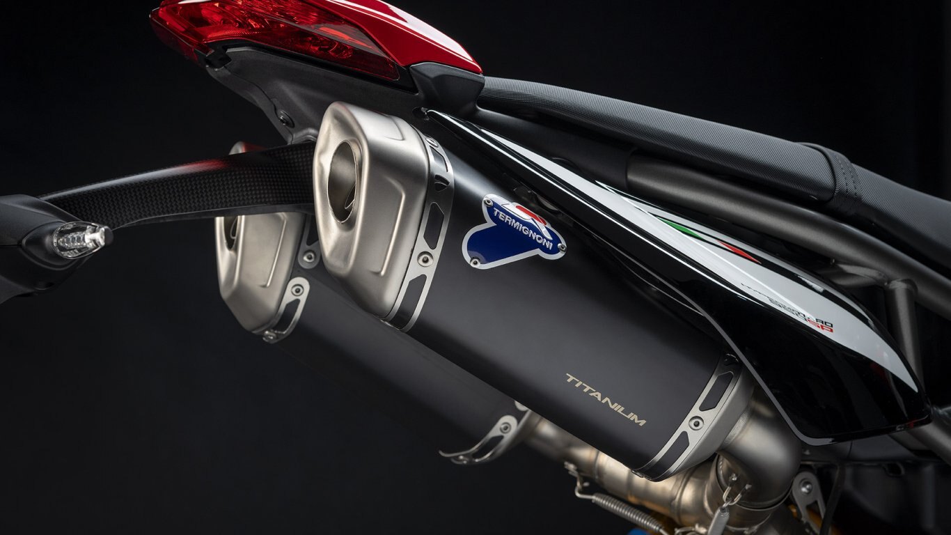 The Hypermotard 950 family is equipped with a revised version of the 937cc Ducati Testastretta 11° twin-cylinder. It delivers 114 hp at 9000 rpm and flaunts a flat torque curve that peaks at 9.8 kgm at 7250 rpm.