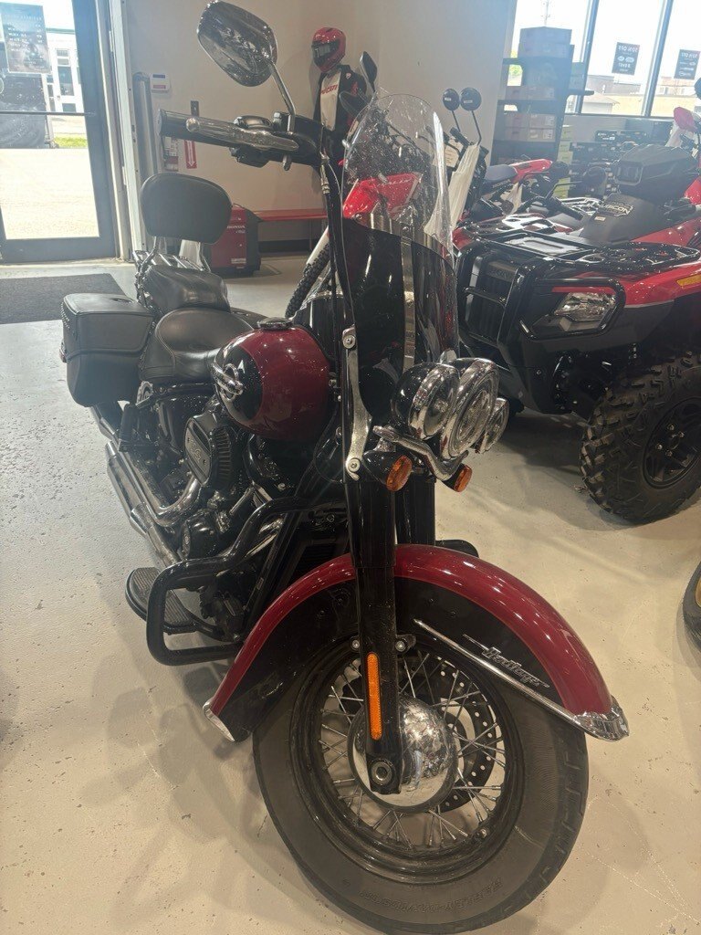 The unique medallion on the Heritage Softail® Classic motorcycle is glass-inlayed, cloisonné-and-chrome style and shows that Harley-Davidson® Softail® model heritage that runs in your blood. With a five-gallon capacity for long weekend cruising, we top off this tank with a nostalgic chrome "cats-eye" console, paint for days and style to spare. |