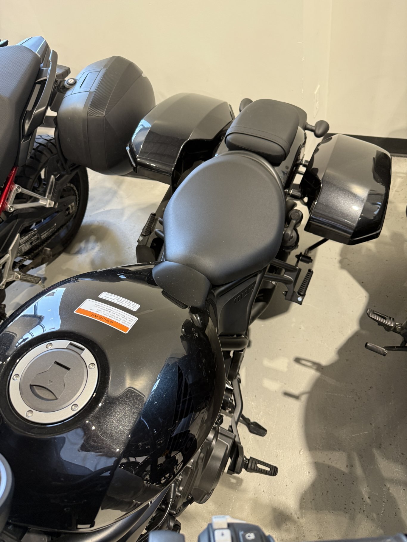 Set up for touringSetting it apart from the Rebel 1100, the Rebel 1100 Touring comes standard with a large headlight cowl with windscreen for added wind protection. Plus the saddlebag which are perfect for packing for a weekend getaway. |