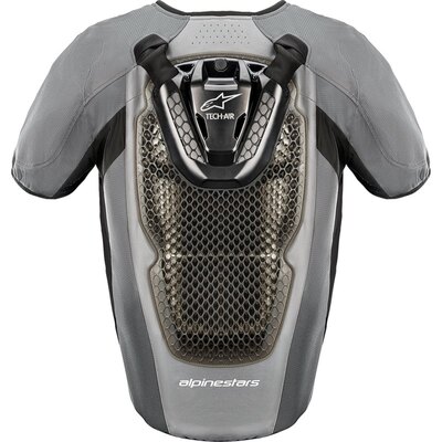 Slim, self-contained wearable airbag vest worn under a motorcycle jacket with stretch or two inches of room around the chest inside Vest comes with...