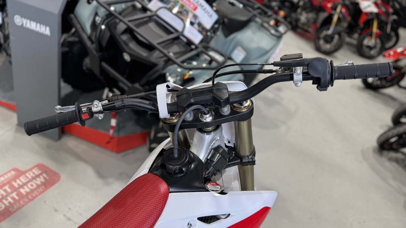 • Complete with an aluminum handlebar, two-position adjustable handlebar clamp, wide foot pegs, gripper seat, and an adjustable clutch lever with works-style cable adjuster.