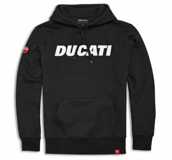 The contrast color Ducati logo on the front is the key element of this sweatshirt w/hood with a kangaroo pocket. The red shield on the right sleeve, combined with the woven label on the front and the black drawstring clips on the hood, give this garment that extra touch of style. The unisex fit makes the Ducati Logo sweatshirt a garment that is perfect for all Ducatisti of all different ages and tastes. Available in four colors, the Ducati Logo sweatshirt is the perfect garment for the Reds of Borgo Panigale enthusiasts to wear to work, during their leisure time and when riding their Ducati, together with the technical apparel.