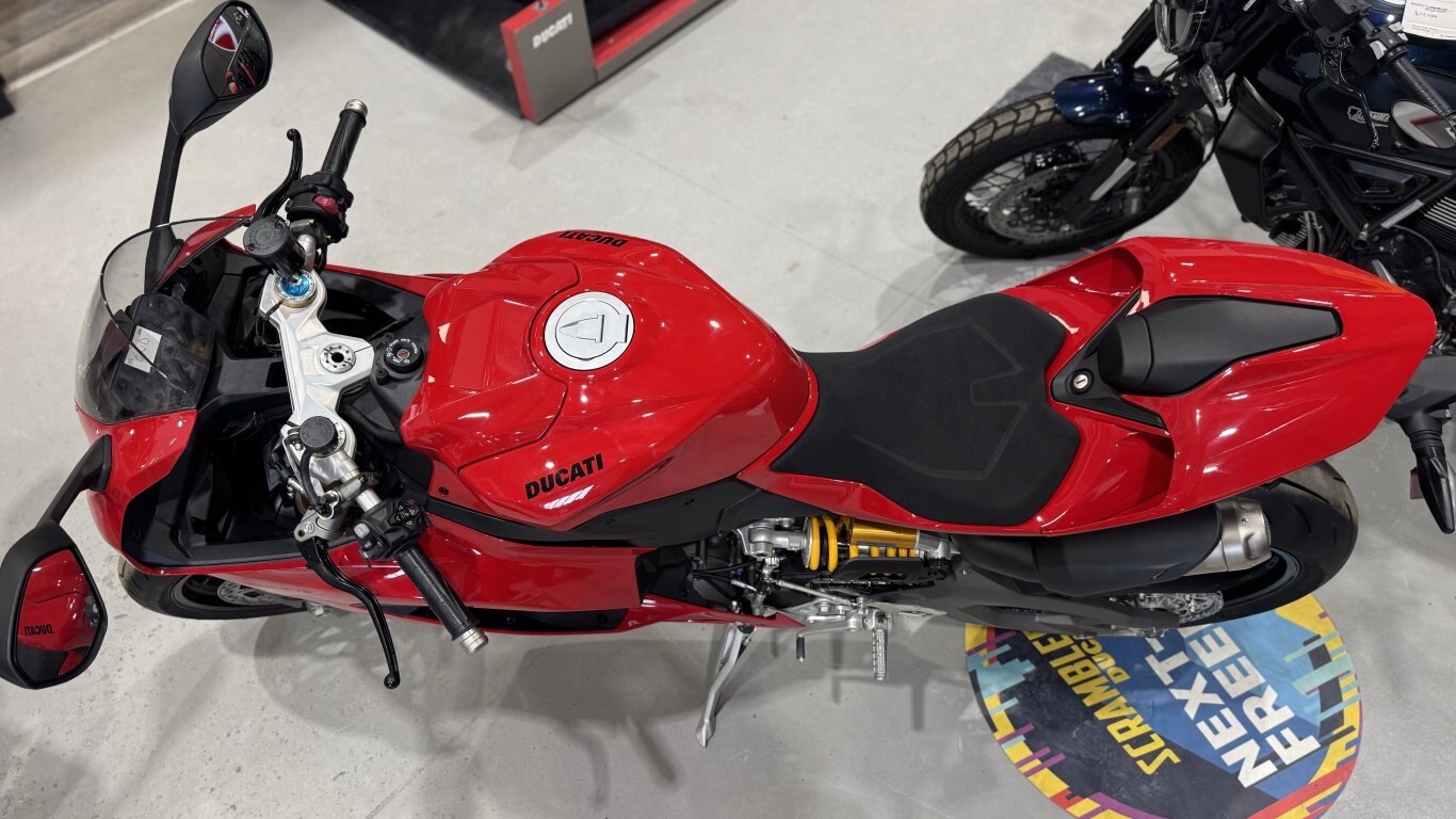 Ducati Quick Shift (DQS) up/down 2.0, Full LED headlights with Daytime Running Light (DRL)*, Auto-off indicators, Lithium-ion battery, Ducati Power Launch (DPL), Pit Limiter, Coming Home, Single seat configuration