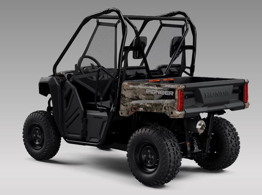 The Pioneer 520 is the Swiss Army knife of side-by-sides, combining compact agility with a mighty 518cc engine. With a 50-inch width, this mini powerhouse effortlessly navigates narrow trails, while a strut-assist tilt/dump bed, seating for two, and 1000-pound towing capacity underscore its versatility and reliability. |