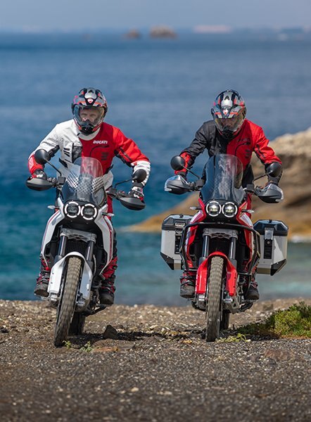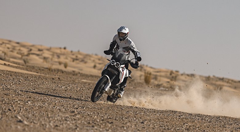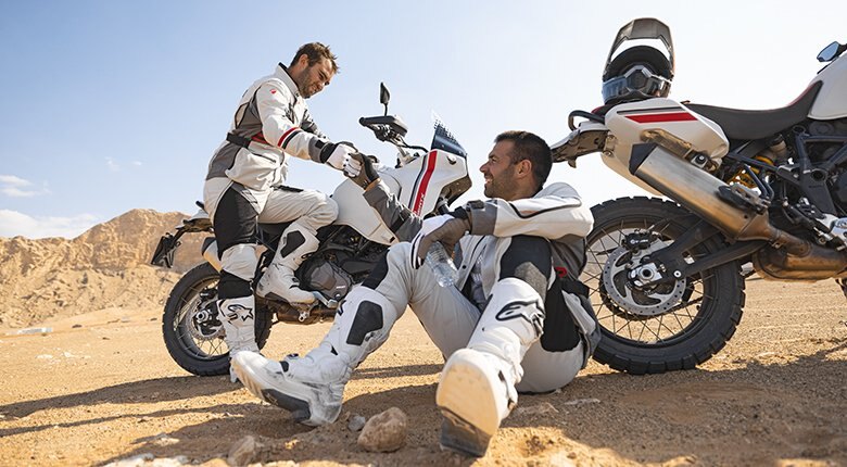 The 937 cc Testastretta 11° engine with desmodromic timing and off-road tuning makes the DesertX powerful and reliable wherever it goes.