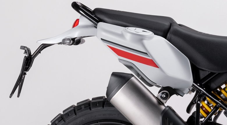 The DesertX is equipped with Pirelli Scorpion Rally STR tubeless tires that combine greater reliability and safety in case of puncture with easier repair. Thanks to the different homologations obtained, a wide selection of alternative tyres is also available.