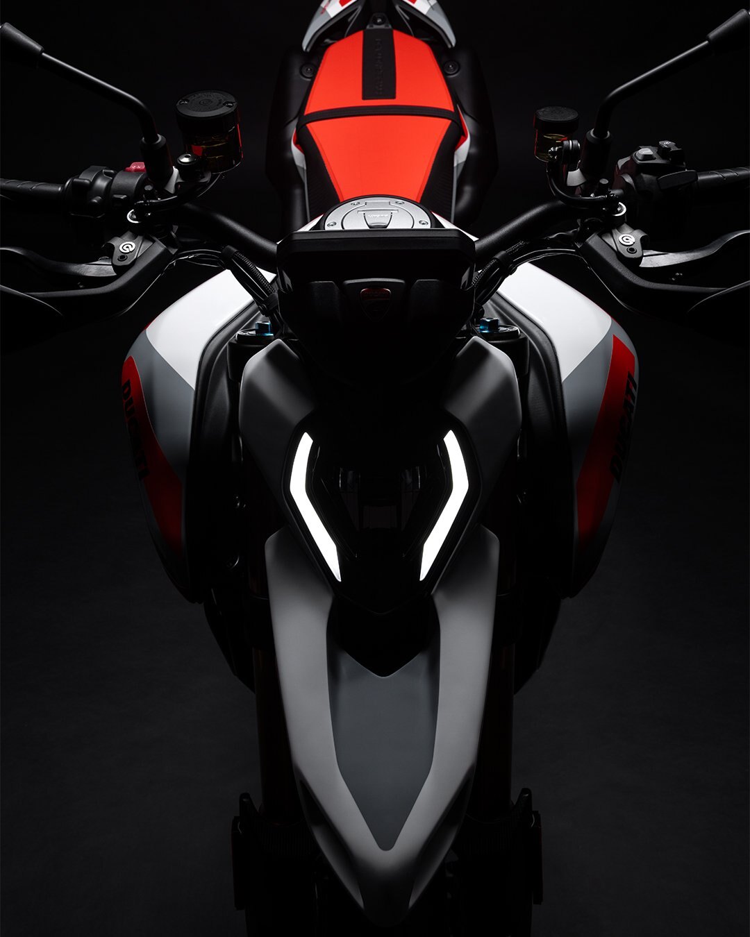 The DNA of the new Hypermotard is rooted in the very first prototype presented at EICMA 2005 and named “Best in Show”. Distinctive elements are inherited from that icon to ensure character, not least the front headlight with unmistakable “beak”, the tank cover with double wing, the dual exhaust under the tail that leaves the trellis frame exposed, and the floating rear light. Clean and aggressive lines that continue to excite and enthral today.